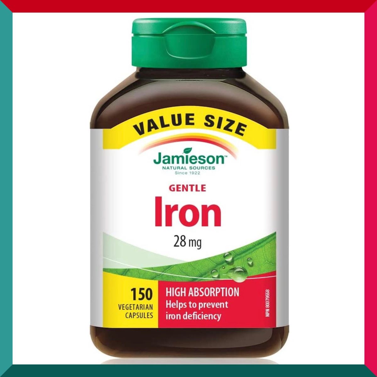 Jamieson - 鐵補充劑28毫克溫和不傷胃配方150粒素食配方 含有葉酸維他命B雜維他命C 補血M經期 (參考效期:05/2026*)