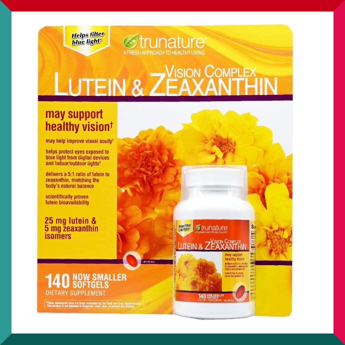 TruNature 已選擇葉黃素和玉米黃質作為眼睛黃斑中存在的天然類胡蘿蔔素。這些植物有助於保護暴露在藍光下的眼睛和免受自由基的影響。